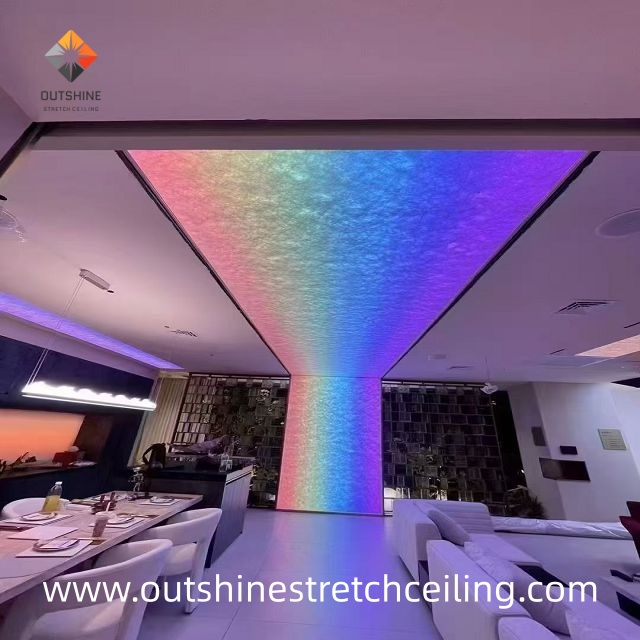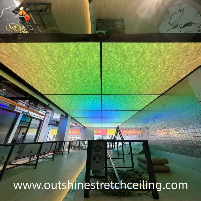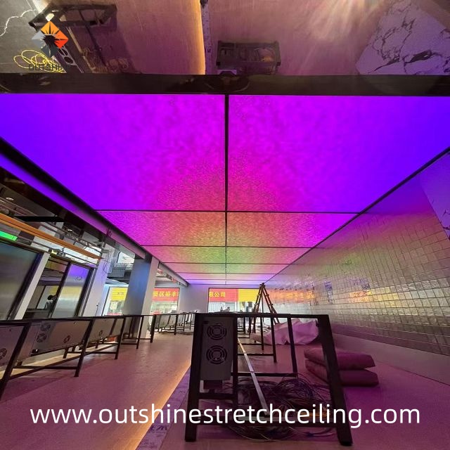 Application | Stretch ceilings, openable Advertising aluminum profile , Level A Glass Fiber fabric use openable Aluminum profile |