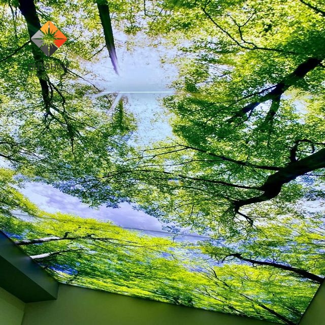 High-Resolution Custom UV Printed PVC Stretch Ceiling - Green Tree Design